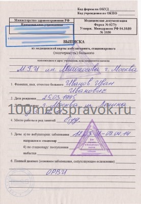 Купить медицинскую справку о болезни формы 027/у (выписка из истории болезни) с доставкой в любой город Купить медицинскую справку в Смоленске | медицинские справки Смоленск